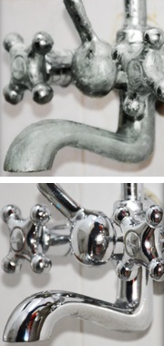 - удалить ржавчину известковый налёт с хромированных поверхностей кранов, смесителей, деталей гидромассажного оборудования